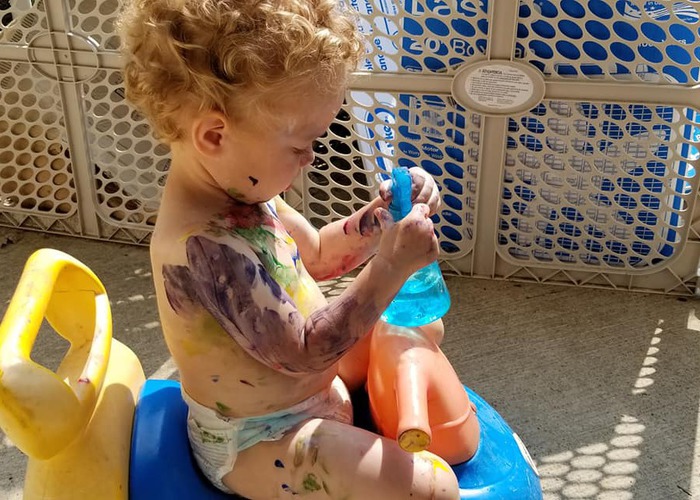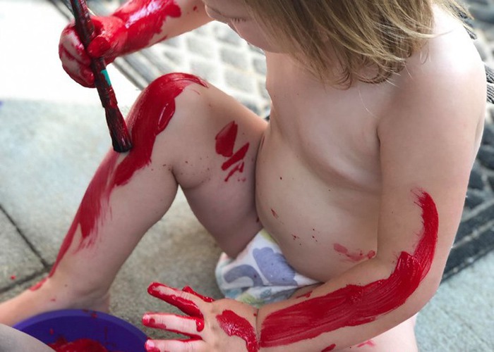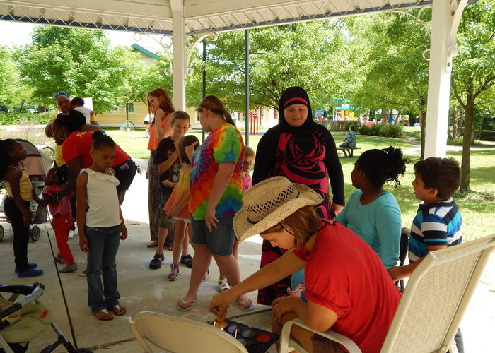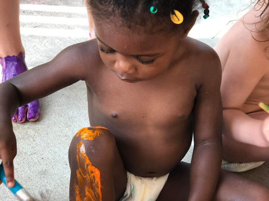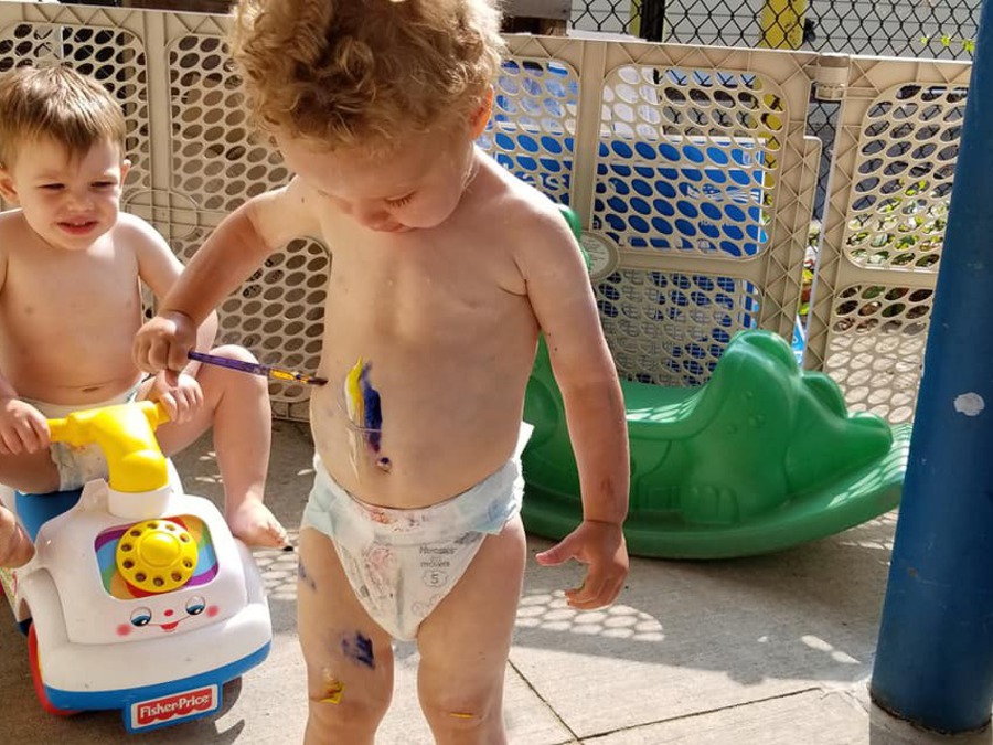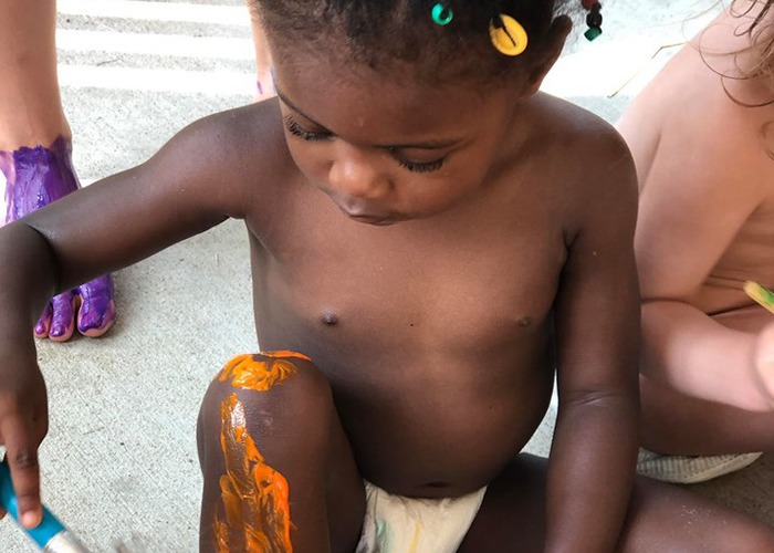 Patiently waiting in line for face painting