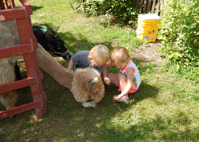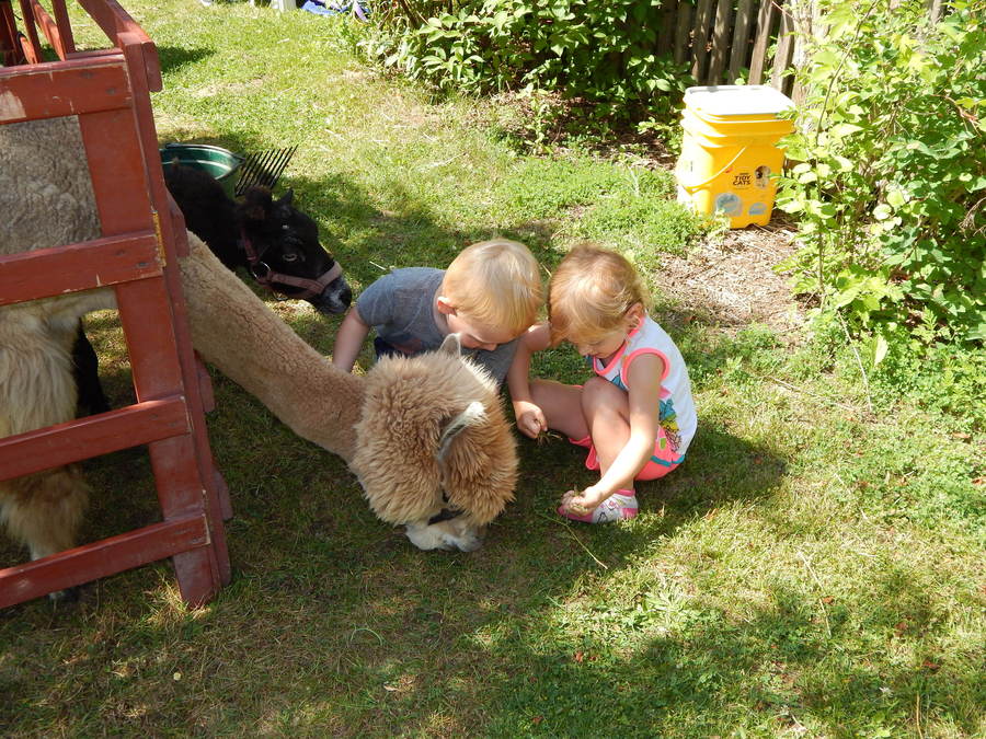 Helping the alpaca find tasty grass