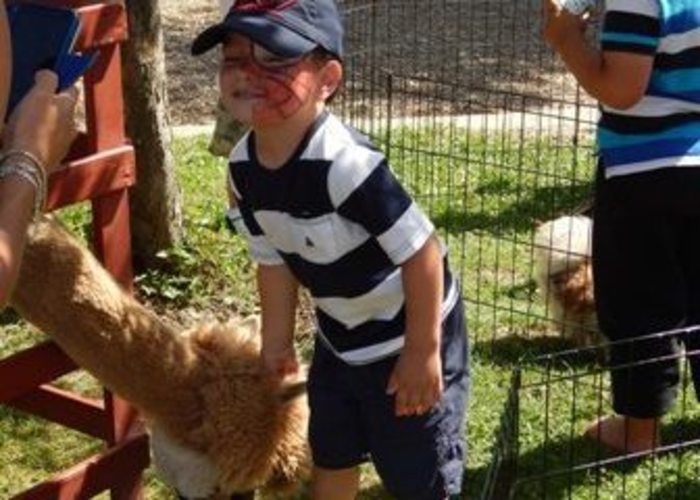 "Spidey" pets the alpaca