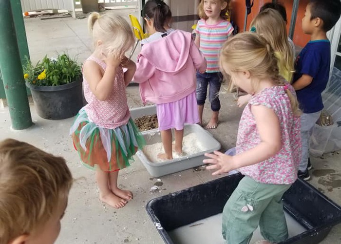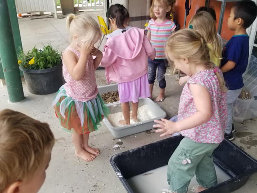 Preschoolers adding flour