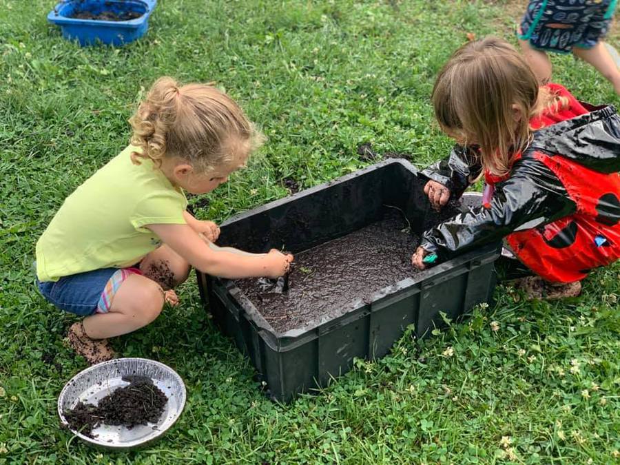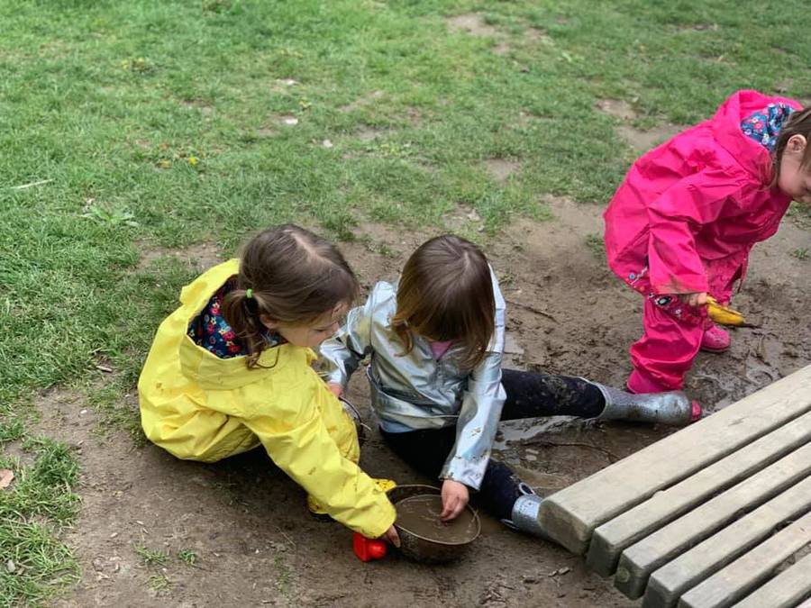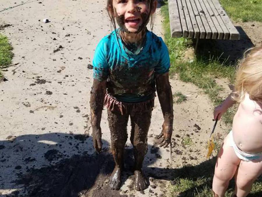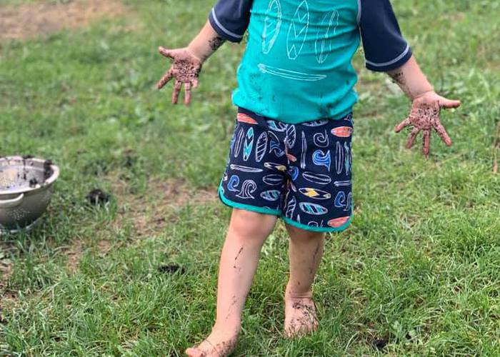 Young Preschool enjoying mud day