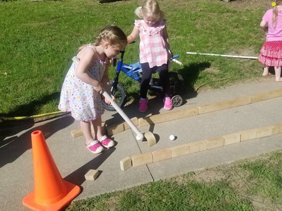 Preschool and Pre-K created a mini golf course after someone went mini golfing over the weekend.