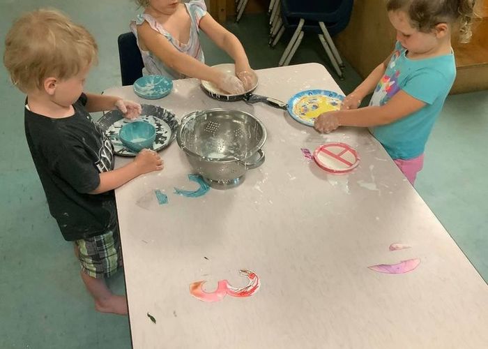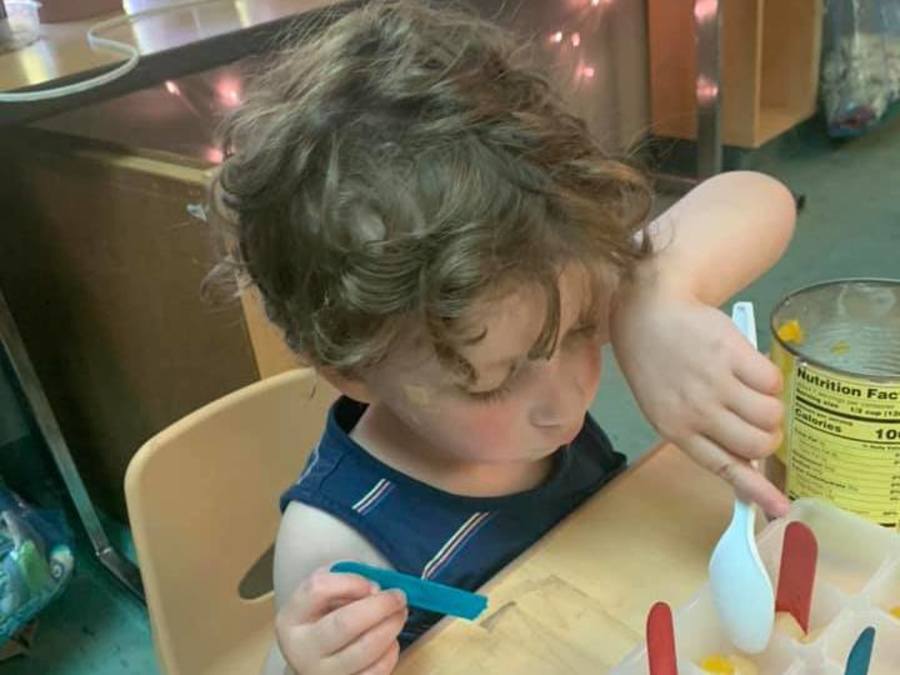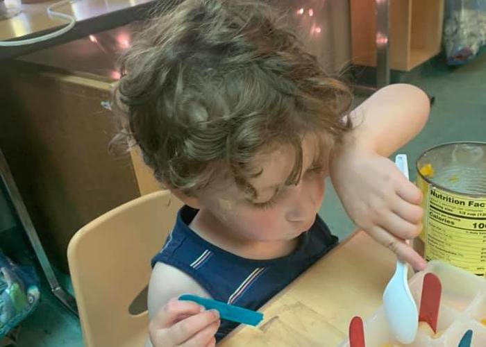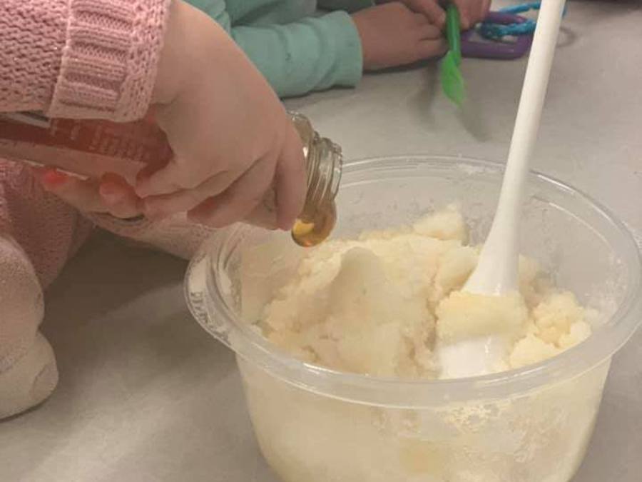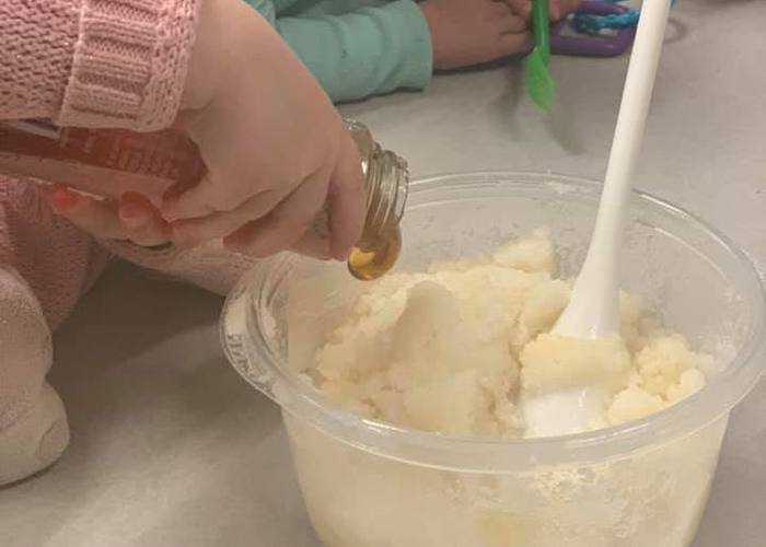 Young Preschool making play dough