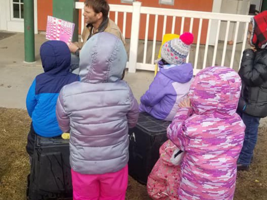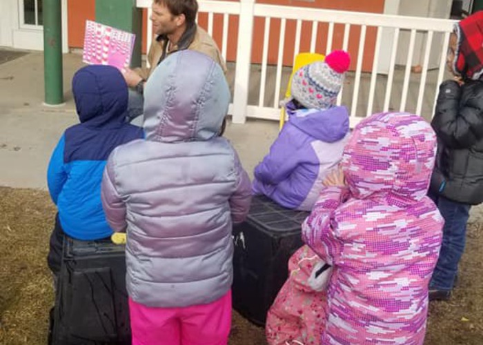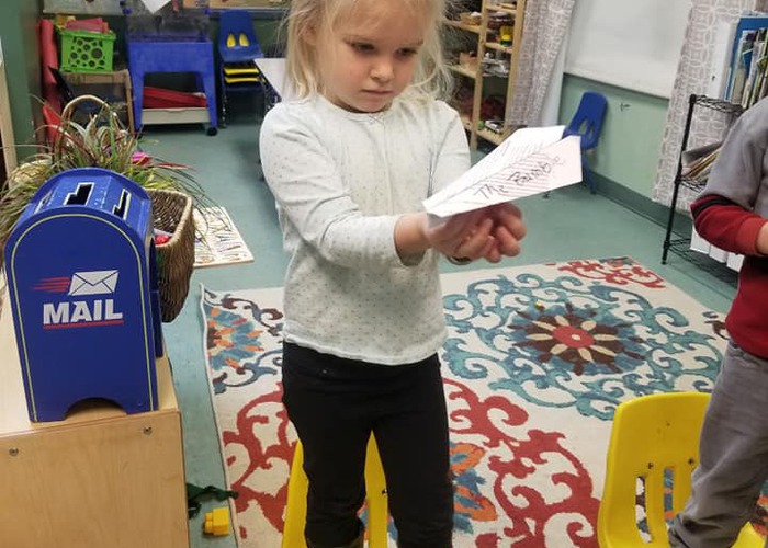 Preschoolers delivering cards